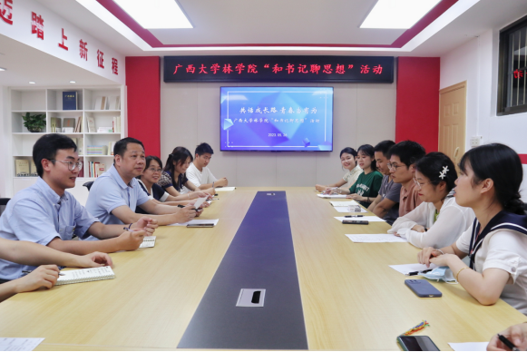 “大家就业进展如何?有没有遇到什么困难?”覃书记逐一了解研究生们的就业进展和实际困难。“林场和选调生是我目前的选择,也是我最难的一个抉择。”2023届风景园林研究生吕佳峻提出了自己的困惑。覃书记鼓励他说,我们是太阳成集团tyc122cc的研究生,我们肩负着乡村振兴的重任,人生只有一次青春,青春就应该拿来奋斗。我们林科学子更应该继承“自找苦吃”的精神,只有吃过苦,才能真的懂得了什么叫实际,什么叫实事求是,要坚持多学多干,多到艰苦的地方锻炼自己。2023届生态学研究生梁嘉玲表示自己一心想扎根防城建功立业的决心,但是很遗憾没有考上选调生。但是她会在西部计划、三支一扶的报考中继续努力。其他同学们也畅所欲言,覃宪儒书记结合当前员工关心的“职业选择”、“职业发展”“应试技巧”等问题进行一一讲解与答疑,让同学们能够更好地结合自身实际特点将个人理想追求融入党和国家的发展事业中去。覃书记强调,大家是与新时代共同前进的一代,更是新时代的亲历者、见证者和奋斗者,希望大家牢记党的嘱托,不辱使命、不负时代,脚踏实地,学好本领,立志做有理想、敢担当、能吃苦、肯奋斗的新时代好青年,让青春在全面建设社会主义现代化国家的火热实践中绽放绚丽之花。