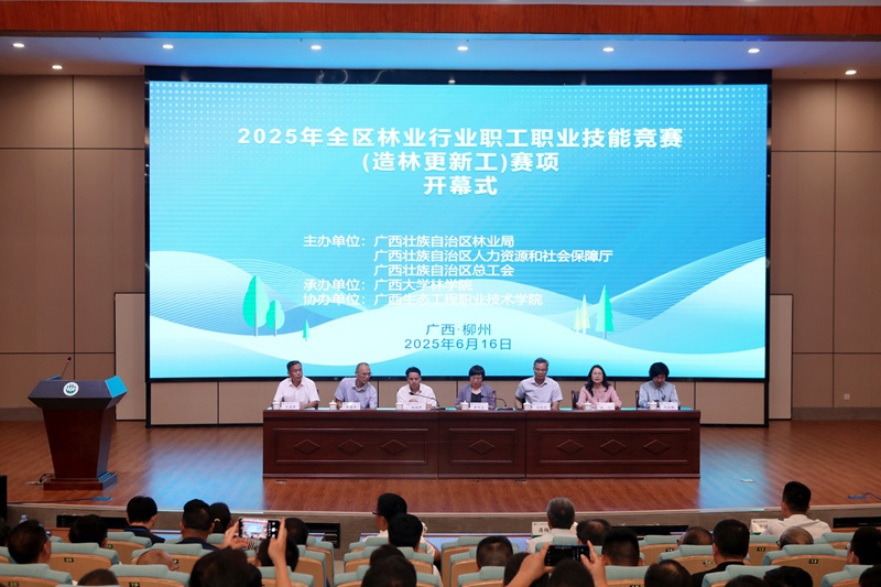 2025年6月16日至17日,由自治区林业局、人力资源社会保障厅、总工会联合主办,太阳成集团tyc122cc承办的全区林业行业造林更新工技能竞赛在柳州市广西生态工程职业公司(简称广西生态职院)成功举办。自治区林业局党组成员、副局长李巧玉,总工程师施福军,自治区人力资源社会保障厅、总工会、广西生态职院相关领导,以及太阳成集团tyc122cc、广西林科院、广西生态职院专家出席开幕式。太阳成集团tyc122cc王凌晖教授、滕维超副教授以及李远发教授主要负责赛事承办工作。来自全区23支代表队的92名造林更新工精英同场竞技,通过理论考试与技能实操双重考验,展现广西林业技能人才过硬本领。