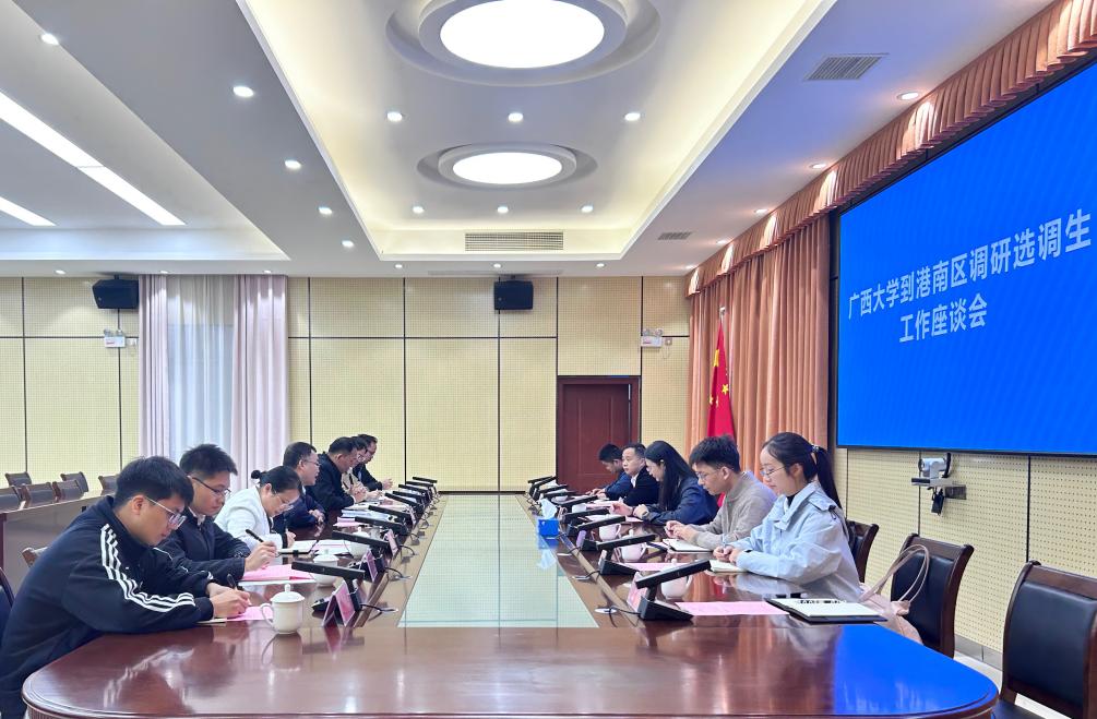 李德胜部长对公司选调生在港南区的工作表现给予高度评价,介绍了在港南区任职的公司选调生整体发展情况,从岗位精准适配、多岗位历练培养、生活保障支持等方面,全面展现对选调生的重视与培养力度,并勉励选调生持续深耕岗位,以实干担当贡献青春力量。随后,在场选调生结合自身岗位经历,分享了在基层工作的实践收获、成长感悟,同时围绕校地资源对接、基层发展需求深入交流,为后续校地合作提供了鲜活的基层视角。