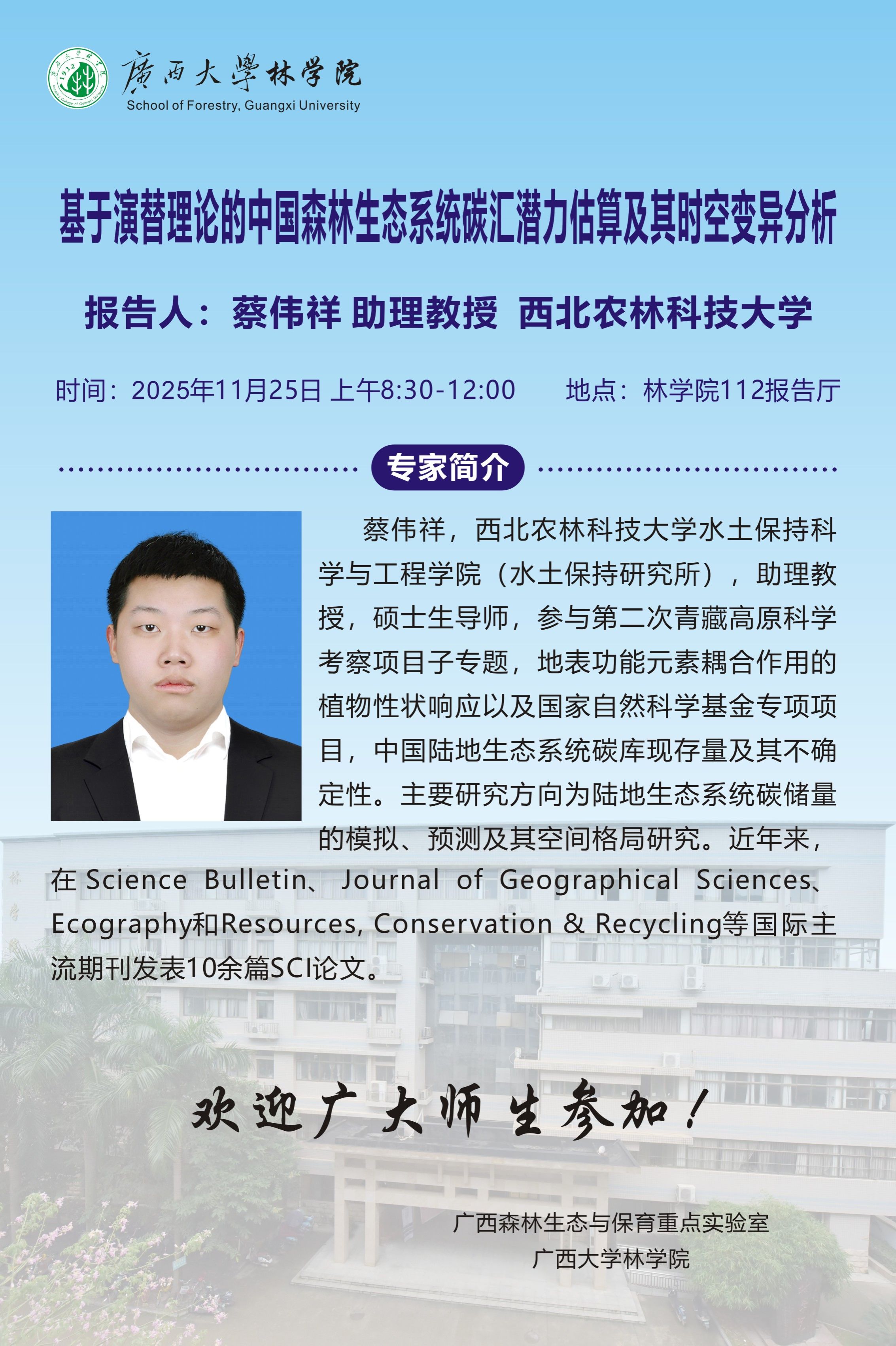 学术报告:基于演替理论的中国森林生态系统碳汇潜力估算及其时空变异分析
