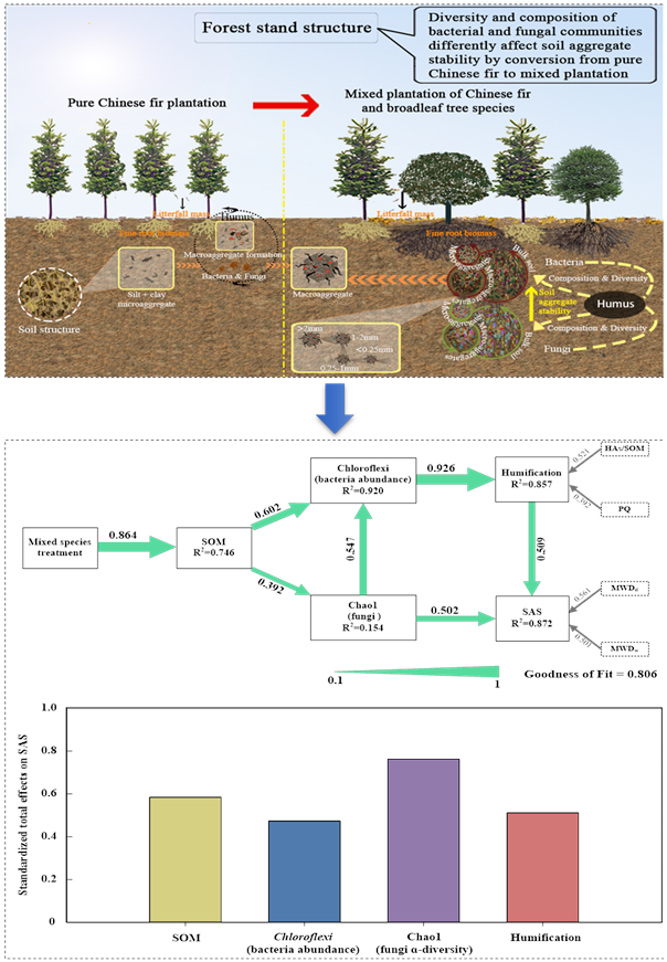 图1杉木人工纯林向复层异龄混交林转变通过调节微生物群落结构促进土壤团聚体稳定性