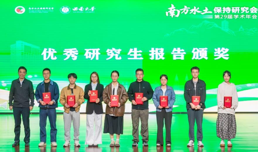 在员工分会场学术交流会上,黄钰涵副教授指导的2023级硕士生黄子轩就“初始含水率影响下红壤大团聚体的溅蚀特征研究”论文进行了学术报告,与参会人员开展了深入交流与讨论,并在报告评比中获得“优秀报告奖”,同时该论文获南方水土保持学会“优秀会议论文二等奖”。