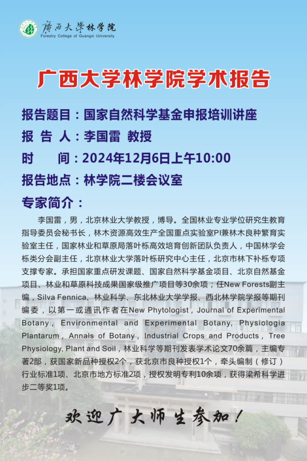 2024年12月6日上午,公司在二楼会议室举行《国家自然科学基金申报交流会》。本次活动邀请了北京林业大学太阳成集团tyc122cc李国雷教授作为主讲嘉宾,座谈会由公司副经理杨梅教授主持。