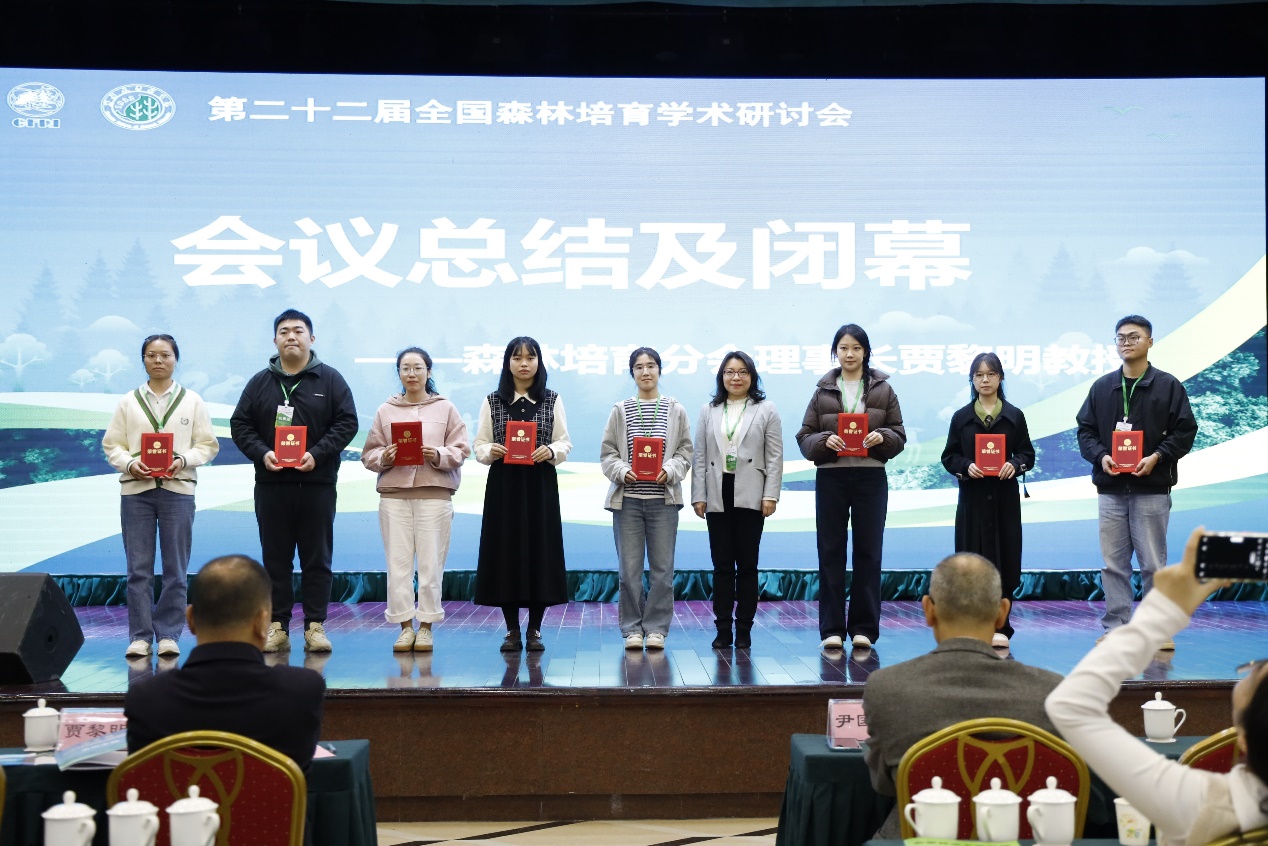 青年教师徐圆圆、姚贤宇、刘泰瑞等人和30余名研究生志愿者参与会务工作。另有40余名研究生参加会议,积极报名参加研讨会学术创新大赛,并斩获多项荣誉,林学硕士研究生陈丽宇荣获2024年度“沈国舫森林培育奖励基金”嘉奖,生态学博士研究生韩小美、吴桐等人获“学术创新获奖”。