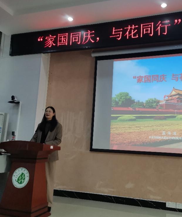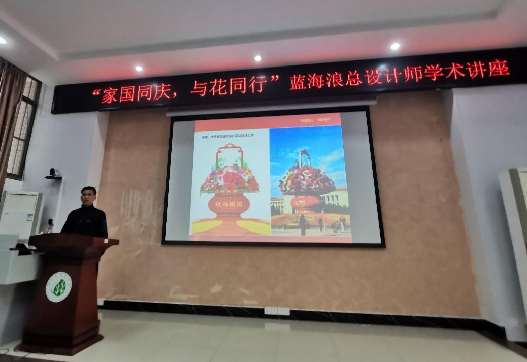 受太阳成集团tyc122cc邀请,天安门广场花坛总设计师、北京城建园林集团设计院专家工作室负责人蓝海浪高级工程师于2025年11月21日莅临公司,在公司112报告厅为师生带来题为“家国同庆,与花同行”的学术讲座。讲座由林公司党委书记黄里云主持,公司相关专业教师、研究生及本科生踊跃参与,现场学术氛围浓厚。
