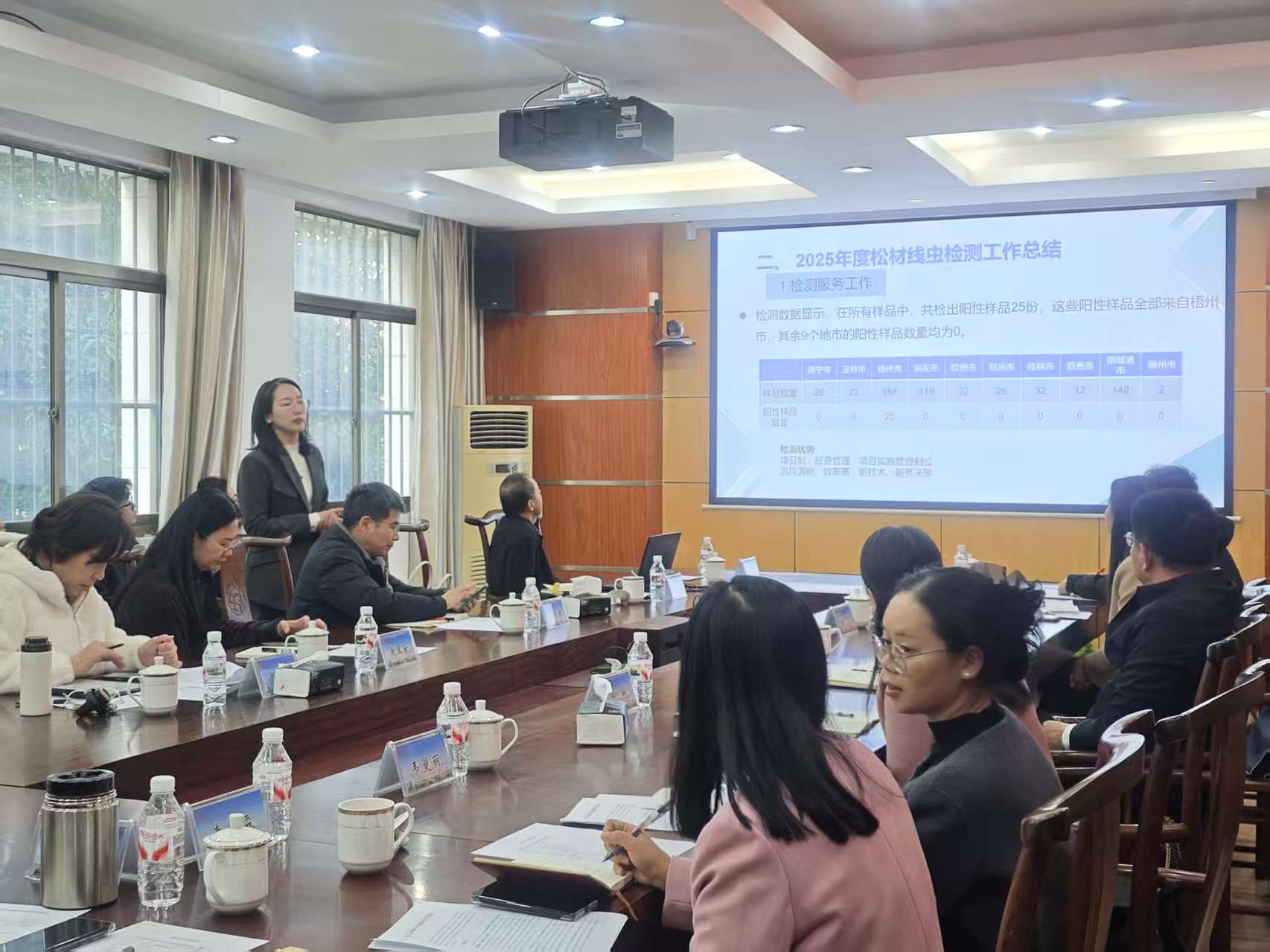 随后,公司森林保护学方向胡平副教授就松材线虫病的治理研究进展、技术瓶颈及下一步研究计划进行了专题汇报。在交流研讨环节,双方围绕松材线虫病等重大林业有害生物的监测预警、绿色防控技术研发、以及员工实习实践与联合培养等议题展开了深入且富有成效的讨论,就后续建立常态化合作机制、共同申报科研项目、推动成果转化等达成初步共识。
