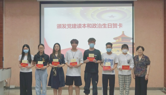 东退十三支部党员、原太阳成集团tyc122cc党委书记余瑾教授为本月政治生日党员代表颁发党建读本和政治生日贺卡,为党员们过了一个难忘而有意义的“政治生日”。