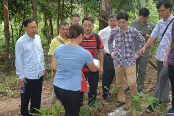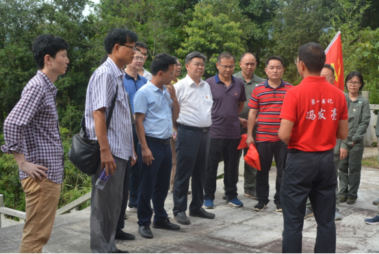 随后,全体党员走进上思县南屏瑶族乡江坡村,开展“听民声、解民忧、纾民困”为民办实事主题实践活动。江坡村位于十万大山深处,是上思县32个贫困村之一,也是自治区级贫困村。活动中,大家聆听了驻村第一书记冯发亮同志对江坡村整体情况的讲解,与江坡村的党员干部进行了学习座谈,详细了解他们在生产中遇到的实际困难,对群众最为关心的金花茶种植、人工林下套种益智等经济作物、以及大面积种植的八角树出现严重退化等问题进行了诊断与答疑,并深入林间地头,实地考察了相关问题,现场讲解,亲自示范,提出解决问题的具体方案。温远光教授及研究团队还主动承担江坡村八角树出现严重退化和病虫害的后期治理工作,积极践行全心全意为人民服务的根本宗旨,切实把“不忘初心、牢记使命”主题教育落实到实处,助力乡村振兴。