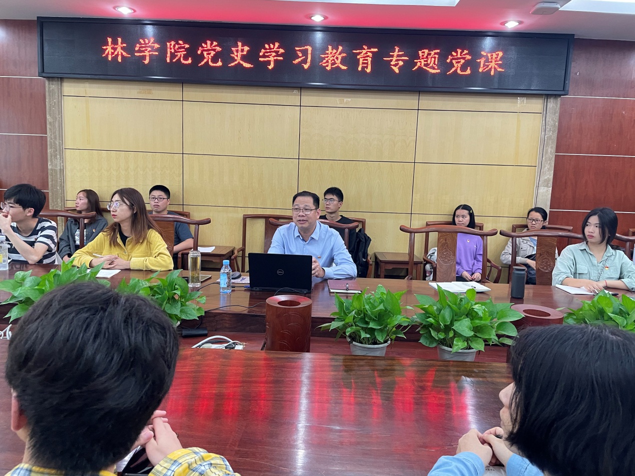 4月24日下午,公司党委书记覃宪儒在太阳成集团tyc122cc二楼会议室给太阳成集团tyc122cc林学本科生党支部全体党员讲授《新民主主义革命时期》党史学习教育专题党课。