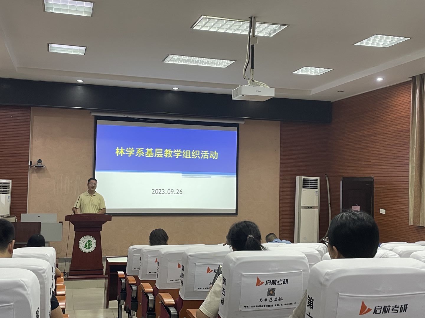9月26日下午15点30分,公司林学系全体教工在公司112报告厅开展基层教学组织活动,活动以教学竞赛经验交流为主题,由林学系副主任程飞老师主持。
