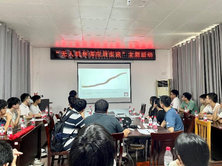活动中,林勘院专家结合具体实例绘声绘色地给同学们介绍了无人机的具体型号及功能,以及无人机在森林消防、病虫害监测与防治、野生动物监测之中的应用以及实际案例,并为同学们进行了具体应用场景展示。