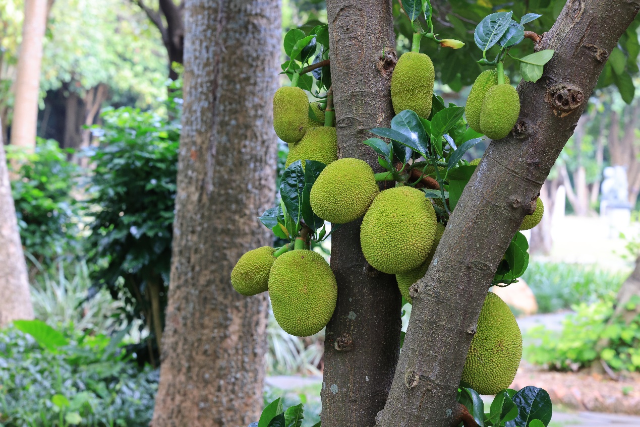波罗蜜果实长在树干上(老茎开花)